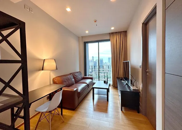 Il 1Br Luxury Condo 50M To Thonglor Bts Station Bangkok offre una piscina e si trova a circa 25 minuti a piedi dal Centro Commerciale DONKI Mall Thonglor. Quest'appartamento offre un distributore automatico e un ascensore e viste sulla città.
